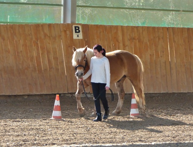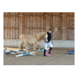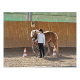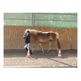Wir begannen mit dem Basispass: Sowohl Praktische Inhalte (Trensen, Hufe auskratzen, ...) als auch theoretisches Basiswissen rund ums Pferd (Fütterung, Haltung, ...) standen auf dem Programm. Außerdem gehört zu den Inhalten von Basispass, Longierabzeichen und Reitabzeichen Kl. V nach der neuen Prüfungsordnung nun auch ein Bodenarbeitsteil: